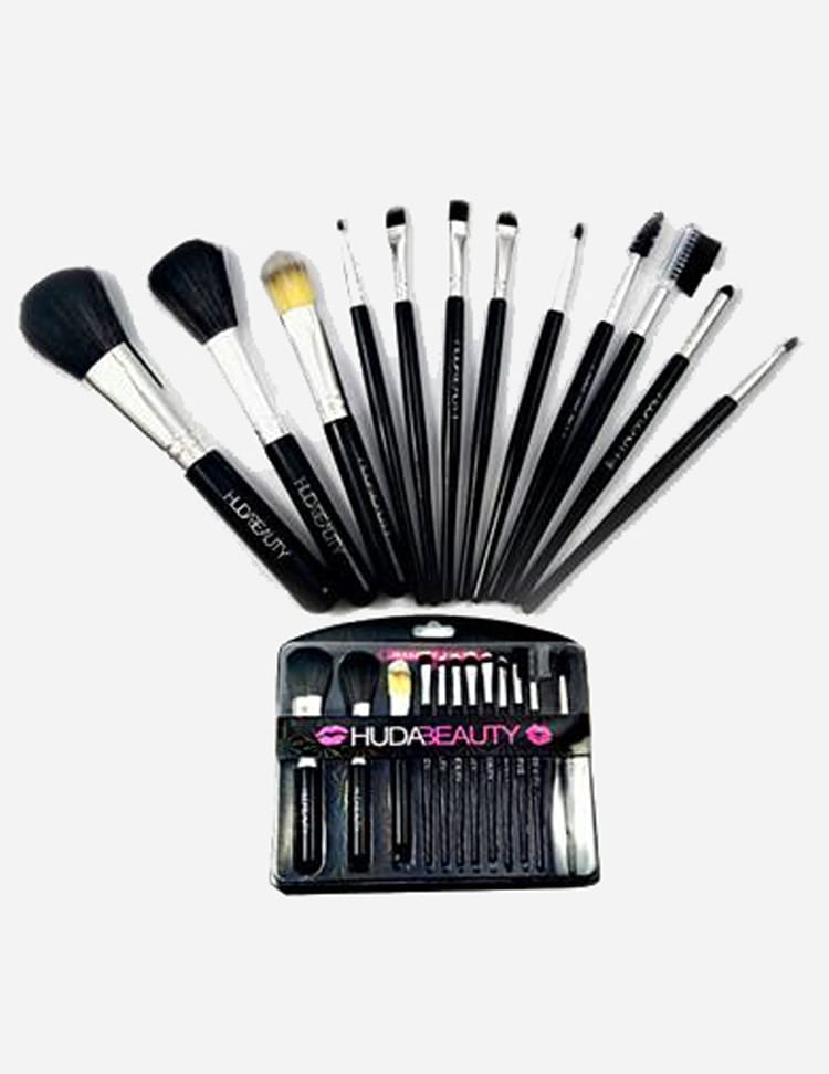 *Huda Beauty Professional Makeup Brush Set** – This premium makeup brush collection includes a variety of face and eye brushes designed for flawless makeup application. The set features soft, high-quality bristles for smooth blending, precise shading, and effortless contouring. With ergonomic black handles branded with the